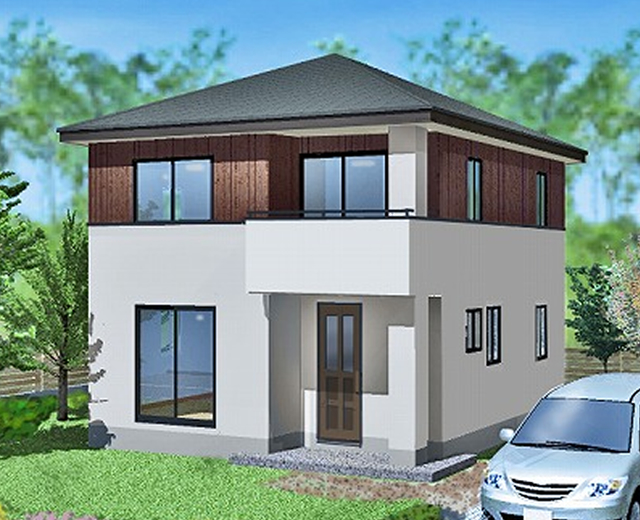 近くから見上げればシンプルな印象ながら、緩勾配のキレイな寄せ棟屋根。雨に強く、飽きのこないデザインです。バランスよく配置された4面の外壁と開口部がモダンで開放感あふれる上質なデザイン。ご希望に応じてお選びいただくことができますので、自分の感性にぴったりのデザイナーズ企画住宅です。