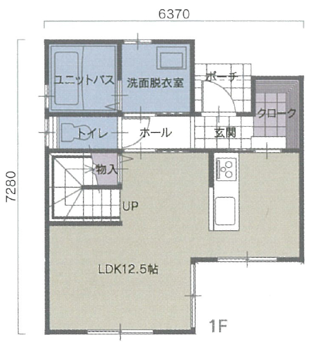 1F面積:37.53㎡(11.35坪),